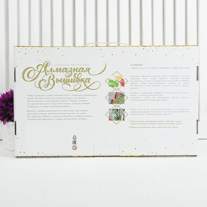 Алмазная мозаика с частичным заполнением на холсте «Пионы», 40 х 30 см
