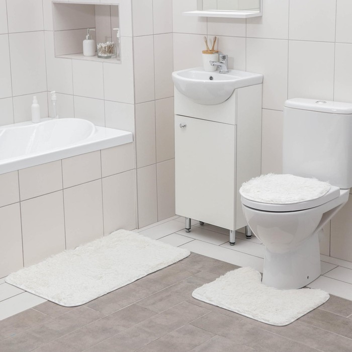 Коврики для ванной и туалета Доляна «Плюшевый», 3 шт: 80×49 см, 40×49 см, 40×35 см, цвет белый