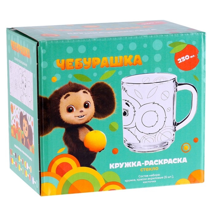 Кружка 230 мл, в наборе с красками и кисточкой «Чебурашка», стекло
