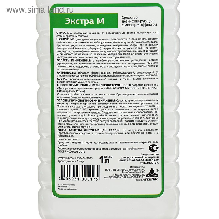 Дезинфицирующее средство с моющим эффектом "Ника-Экстра М", 1 л