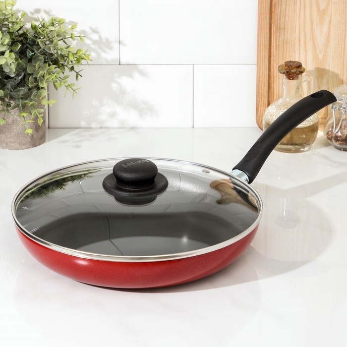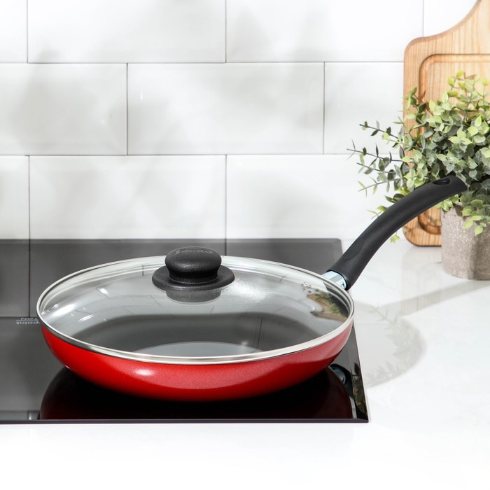 Сковорода Blaze, d=28 см, стеклянная крышка, антипригарное покрытие, цвет красный