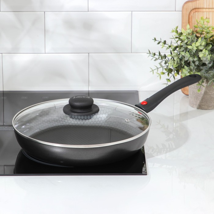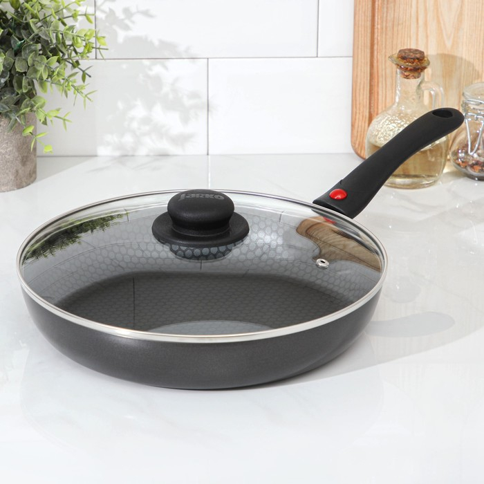 Cковорода Forever, d=28 см, съёмная ручка, стеклянная крышка, антипригарное покрытие, цвет тёмно-серый