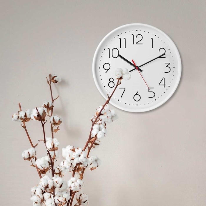 Часы настенные, интерьерные, d-30.5 см, бесшумные, белые