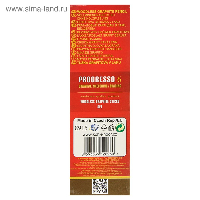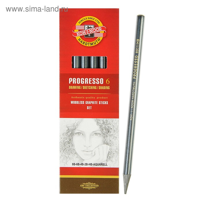 Набор карандашей цельнографитовых разной твердости 6 штук, Koh-I-Noor PROGRESSO 8915, 8B-HB, картон