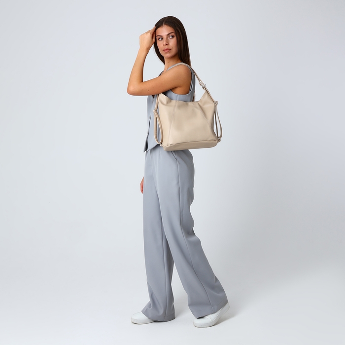 Сумка женская мешок на молнии, цвет бежевый