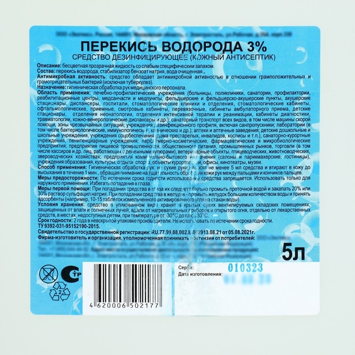 Перекись водорода раствор 3% средство дезинфицирующее, 5 л