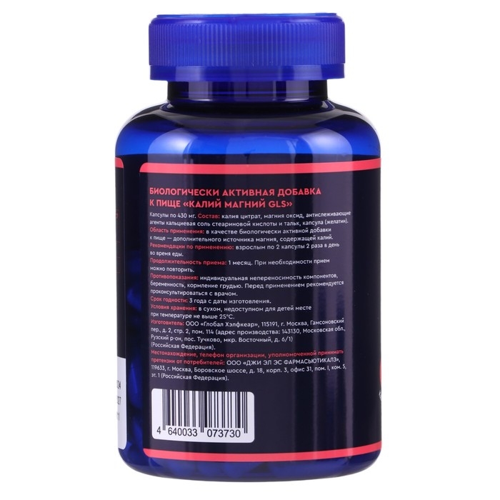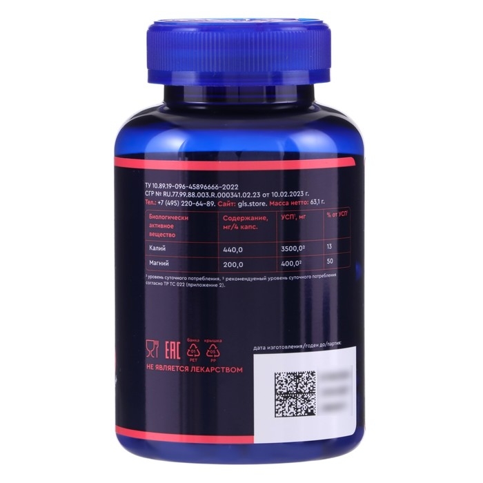Калий Магний GLS для сердца и сосудов, 120 капсул по 430 мг