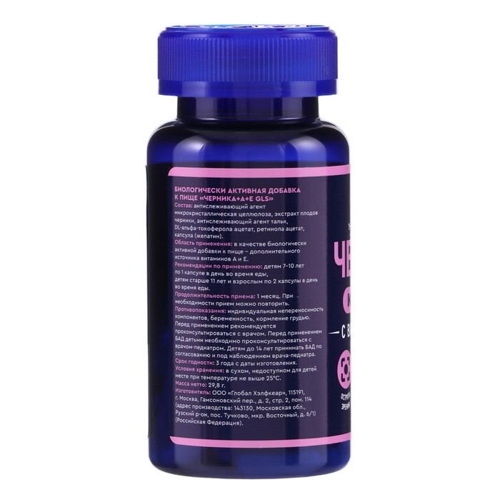 Черника комплекс с витаминами A+E GLS для улучшения зрения, 60 капсул по 400 мг