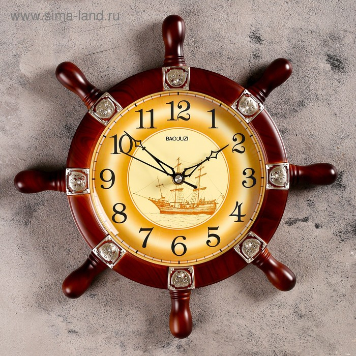 Часы настенные, интерьерные, "Штурвал", бесшумные, 34 х 34 см, циферблат d-18.5 см