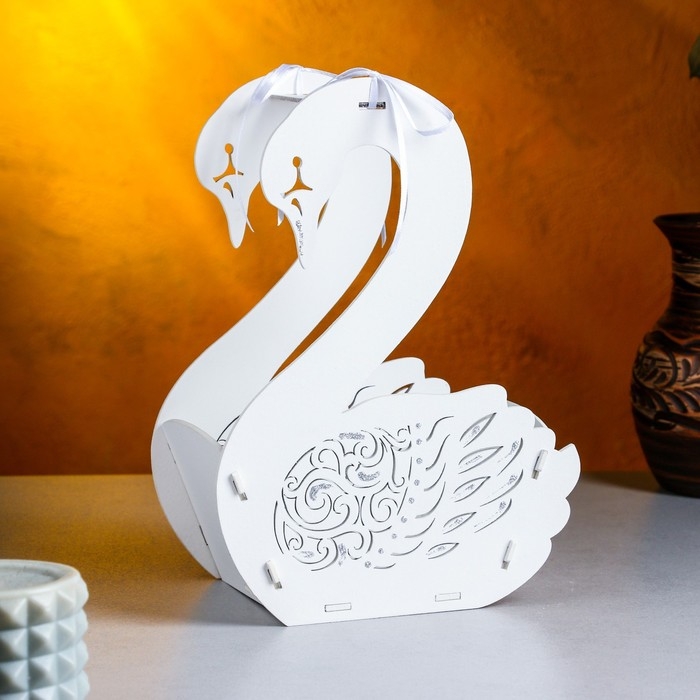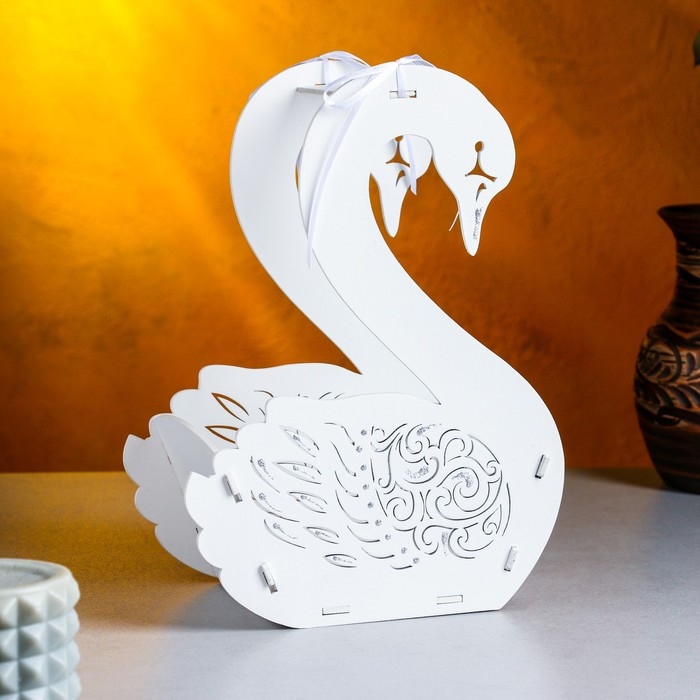 Кашпо деревянное "Лебедь", 17,5х11х24,5 см,дуб, белый