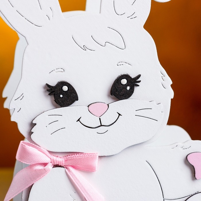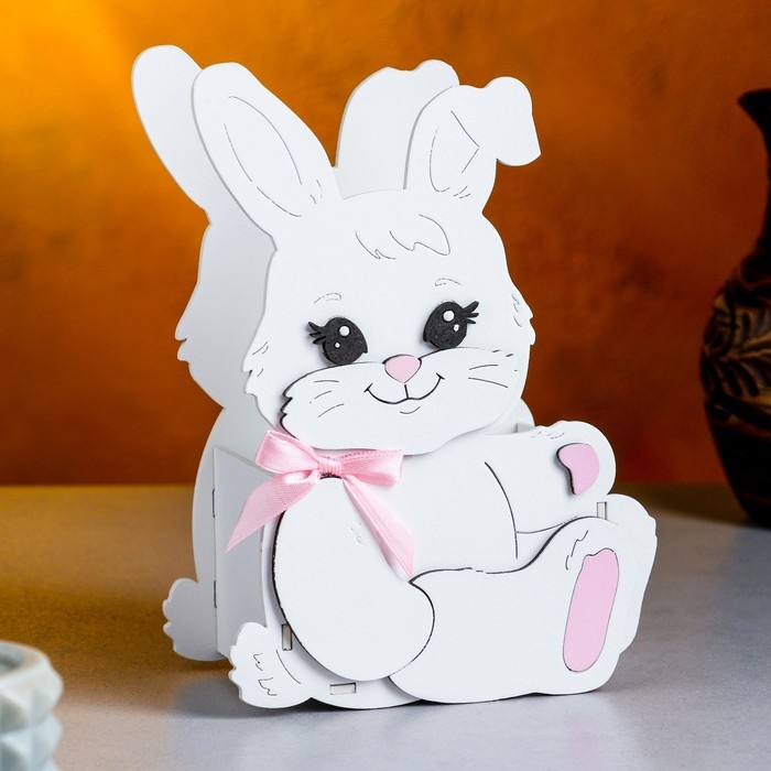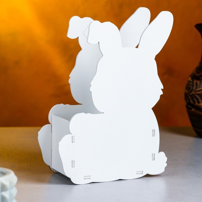 Кашпо деревянное "Зайка с бантом", 13,5х7х19,5 см, дуб, белый