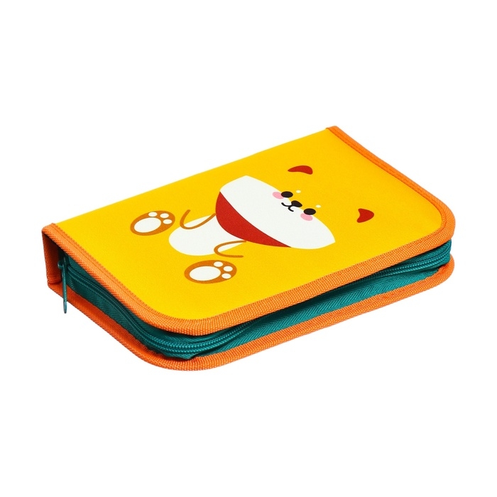 Пенал 1 секция 140 х 210 х 40 мм, откидной карман и косметичка, тканевый, Calligrata TOP Content "Песик"