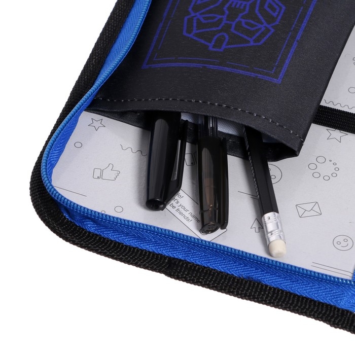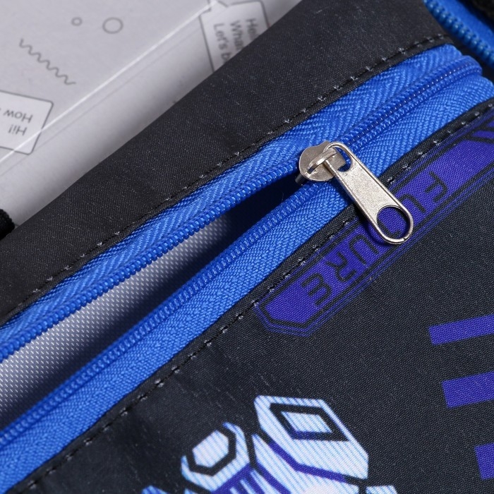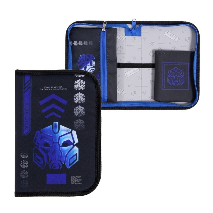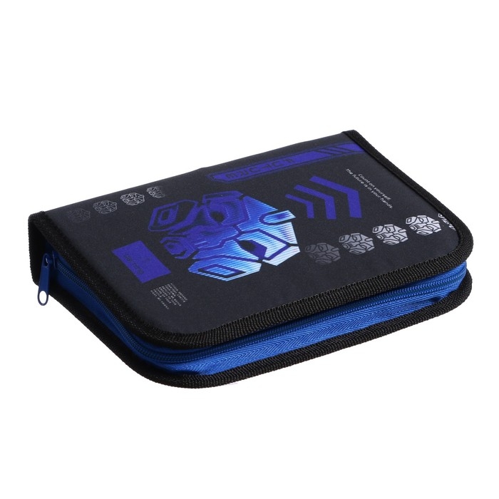 Пенал 1 секция 140 х 210 х 40 мм, откидной карман и косметичка, тканевый, Calligrata TOP Content "Робот"