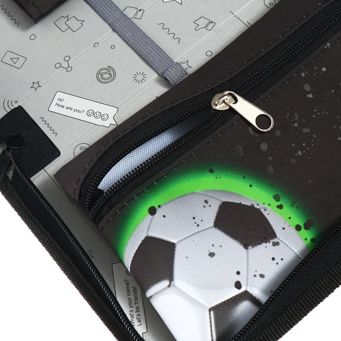Пенал 1 секция 140 х 210 х 40 мм, откидной карман и косметичка, тканевый, Calligrata TOP Content "Футбол"
