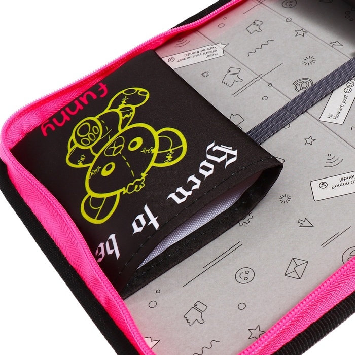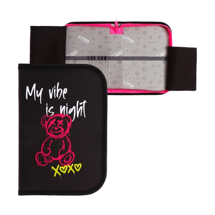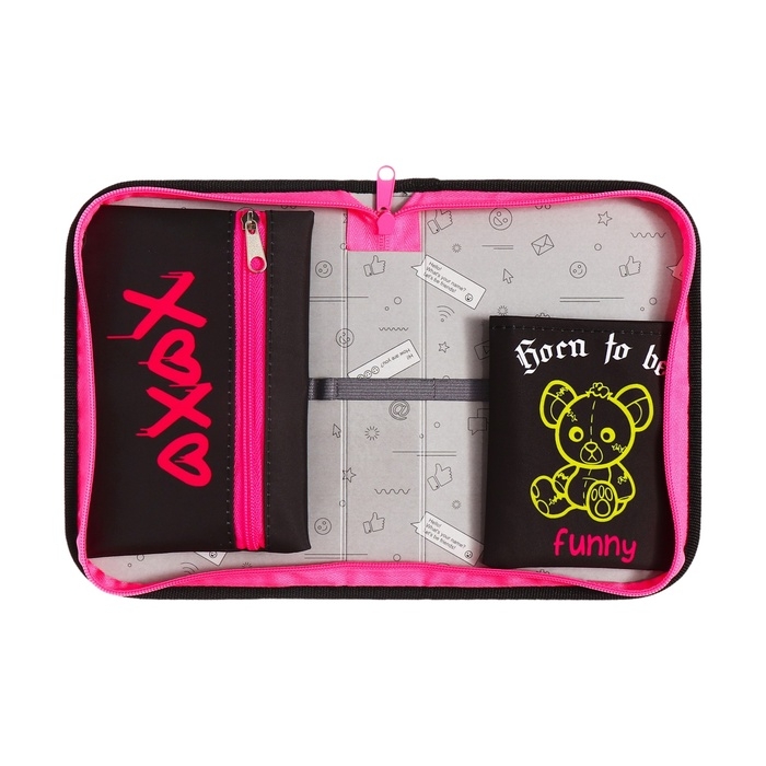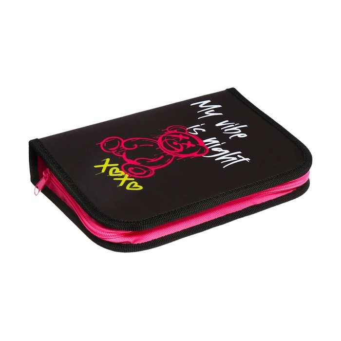 Пенал 1 секция 140 х 210 х 40 мм, откидной карман и косметичка, тканевый, Calligrata TOP Content "Медведь"