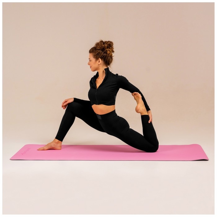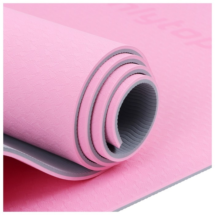 Коврик для фитнеса и йоги ONLYTOP, 183х61х0,6 см, цвет серый/розовый
