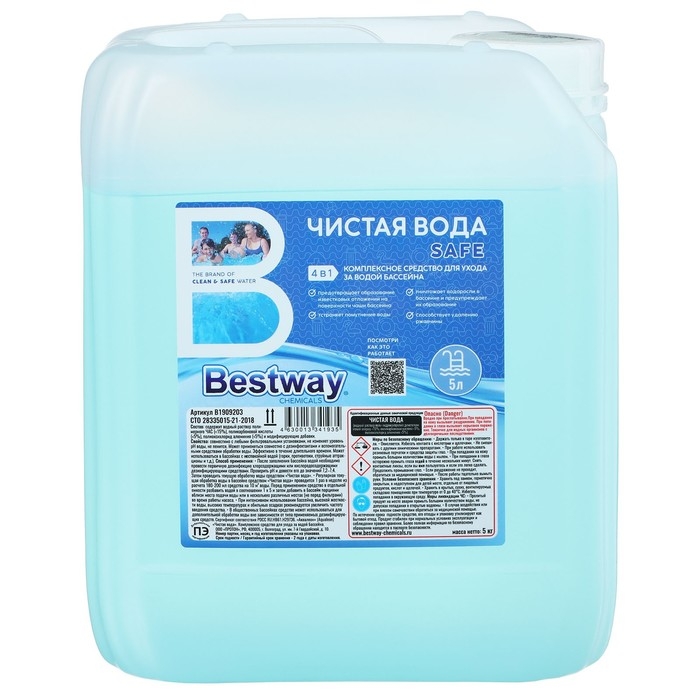 Комплексное жидкое средство SAFE «Чистая вода 4 в 1» для ухода за водой бассейна, 5 л