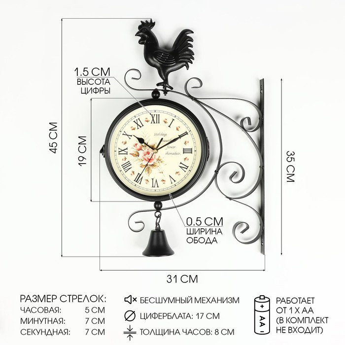 Часы настенные двусторонние, на подвесе "Флюгер", бесшумные, циферблат d-19 см, 48 х 32 см