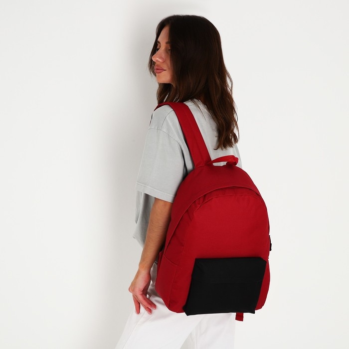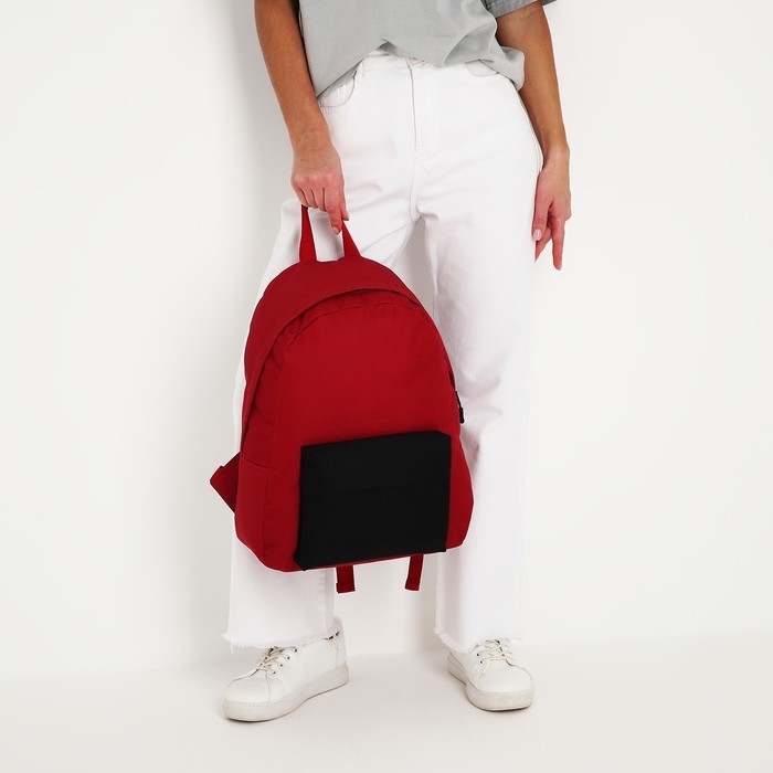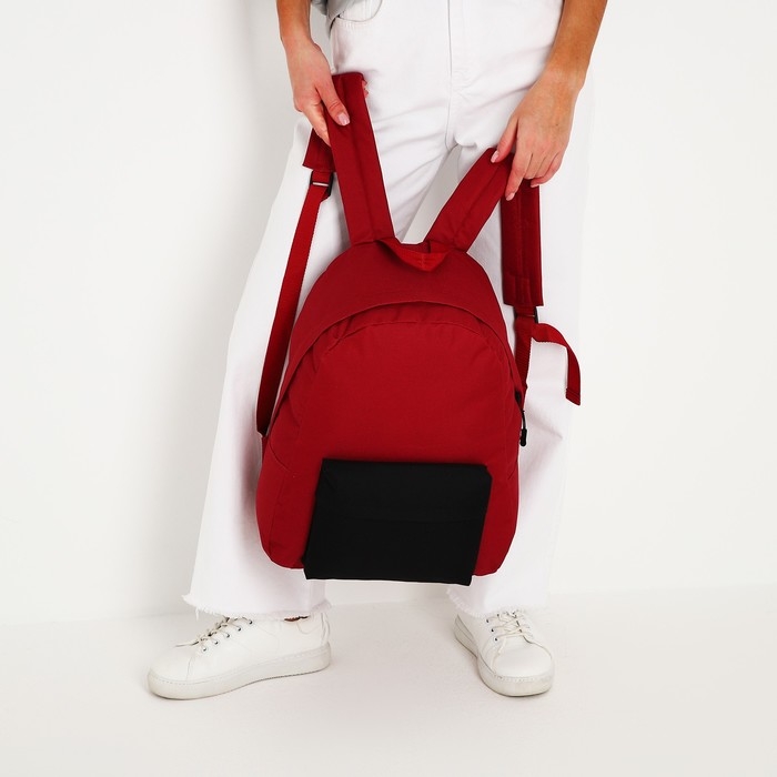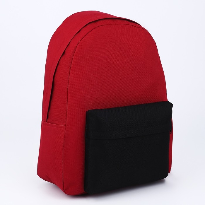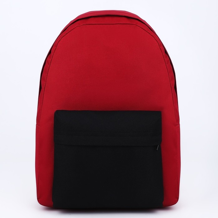 Рюкзак школьный текстильный с цветным карманом, 30х39х12 см, цвет бордовый/чёрный