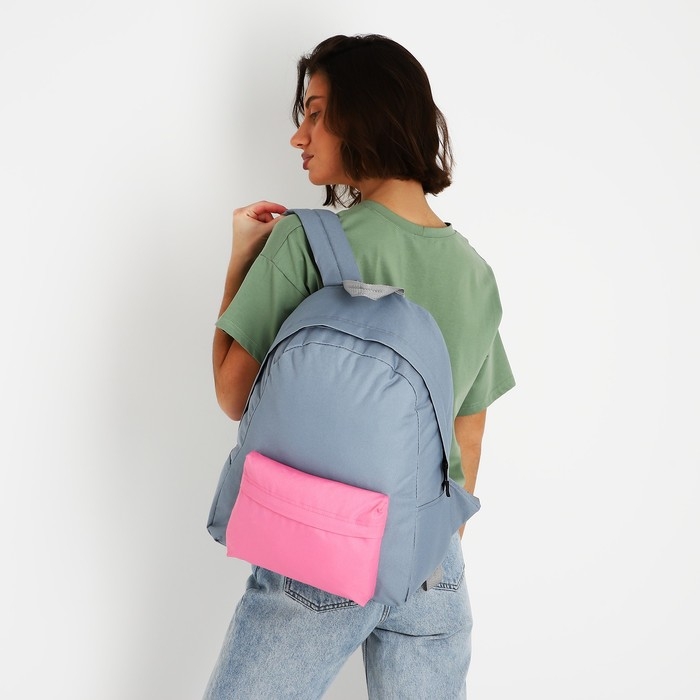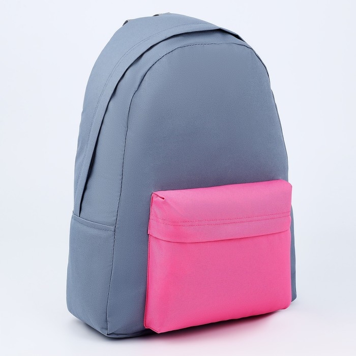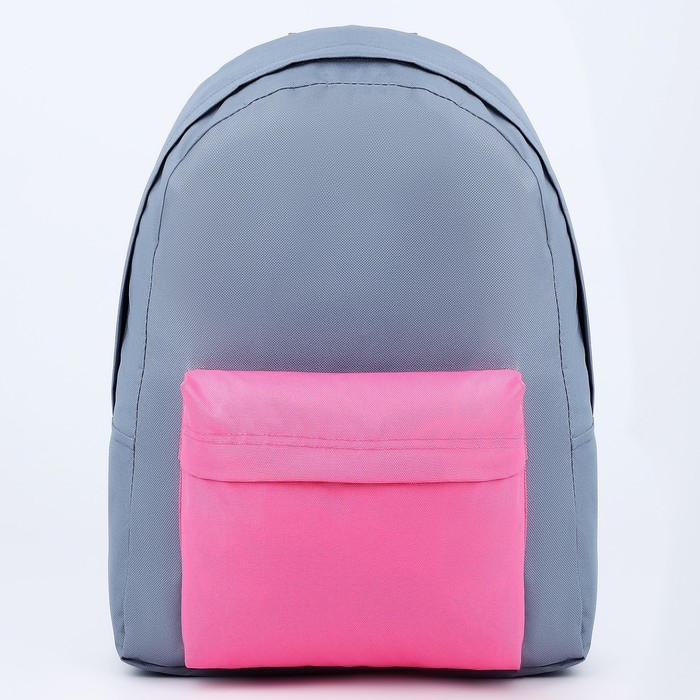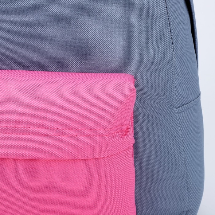 Рюкзак школьный текстильный с цветным карманом, 30х39х12 см, цвет серый/розовый