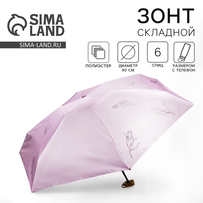 Зонт женский «Нюдовый минимализм», 6 спиц, складывается в размер телефона.