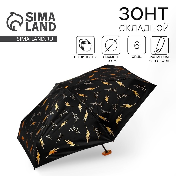 Зонт женский «Чёрное золото», 6 спиц, складывается в размер телефона.