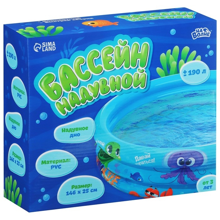 Бассейн надувной «На волне: Морской мир», 146х25 см, с надувным дном