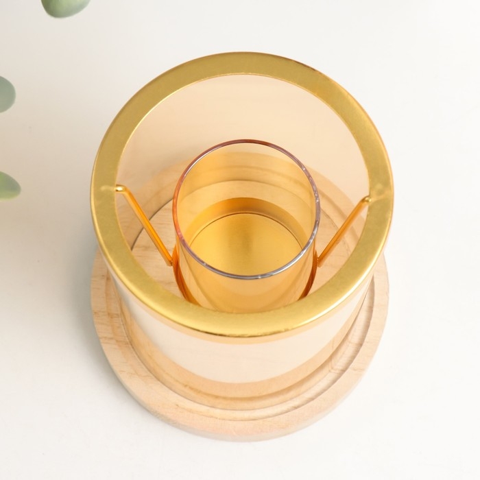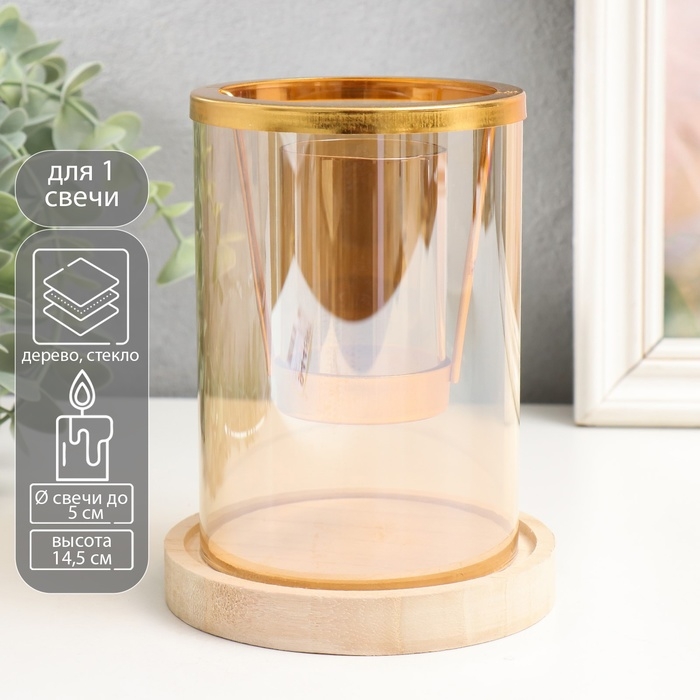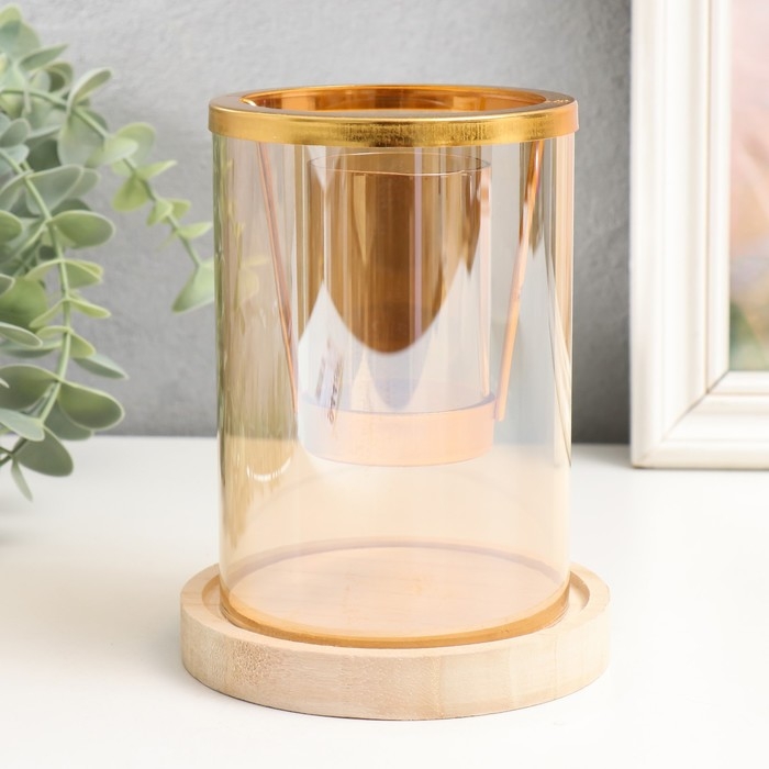 Подсвечник стекло, металл, дерево "Стаканчик в цилиндре" d-5 см 12х12х14,5 см