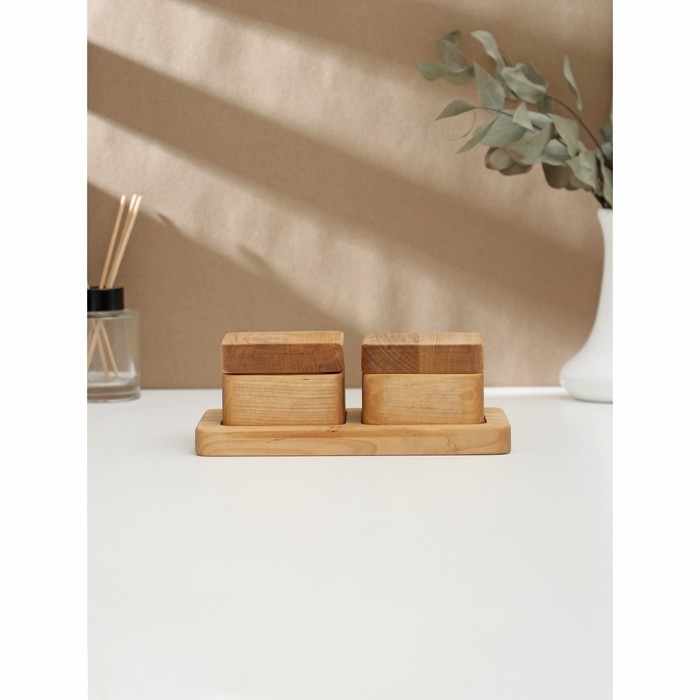 Набор для специй Adelica, 2 банки с крышкой на деревянной подставке, пропитано маслом, 20×10×1,8 см, берёза