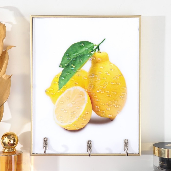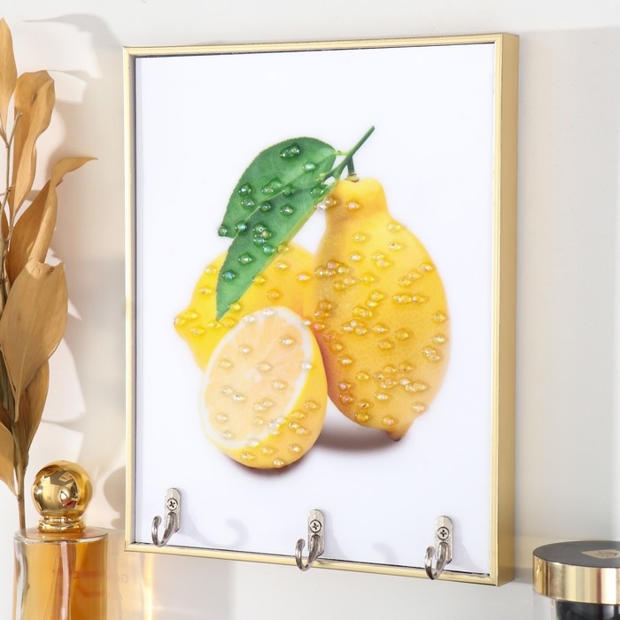 Ключница пластик, МДФ 3 крючка "Лимонная свежесть" стразы, золото 18,5х1,8х23,5 см