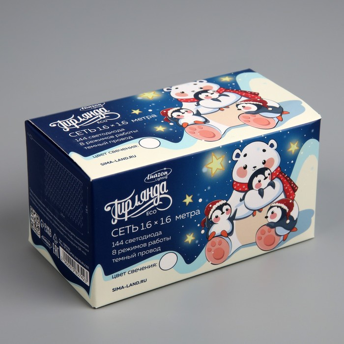 Гирлянда «Сеть» 1.6 × 1.6 м, IP20, тёмная нить, 144 LED, свечение белое, 8 режимов, 220 В