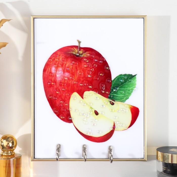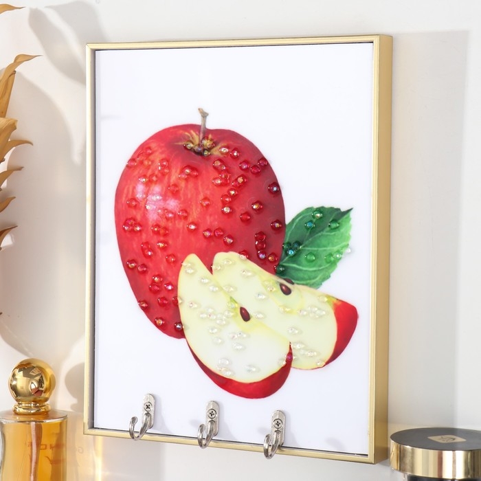 Ключница пластик, МДФ 3 крючка "Красное яблочко" стразы, золото 18,5х1,8х23,5 см