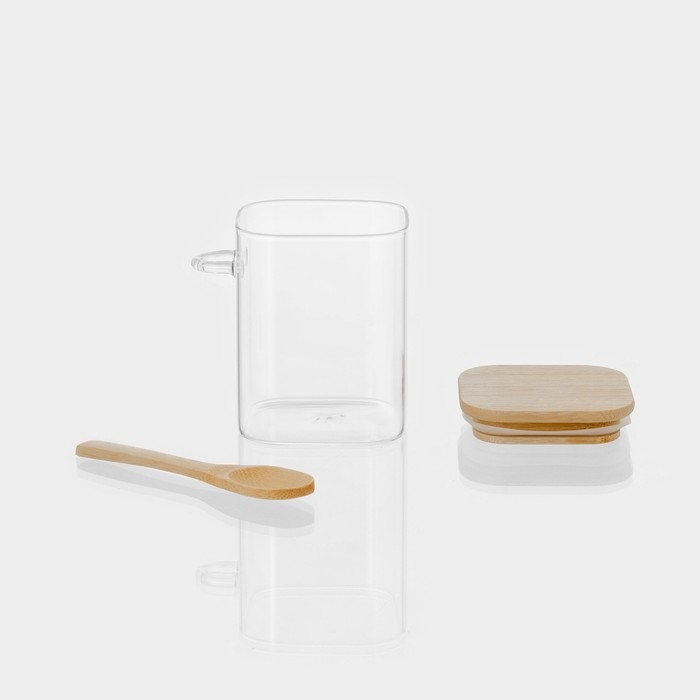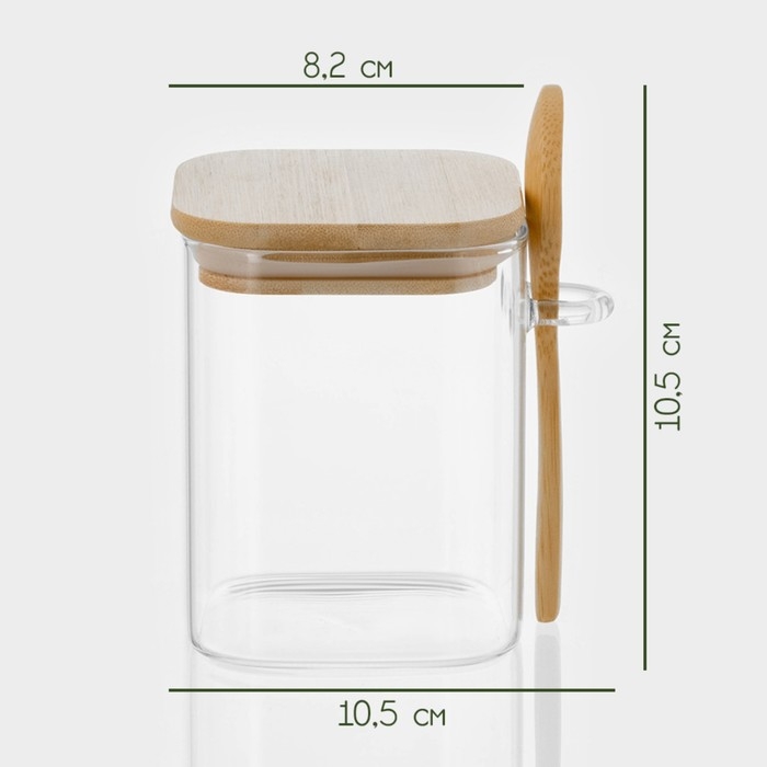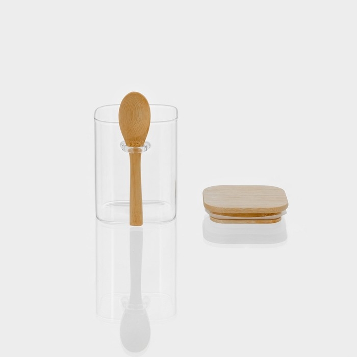 Банка стеклянная для сыпучих продуктов с бамбуковой крышкой и ложкой BellaTenero «Эко», 450 мл, 10,5×8,2×10,5 см