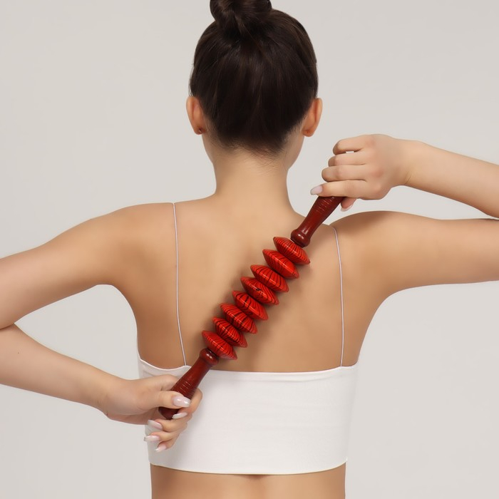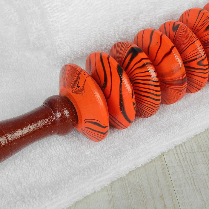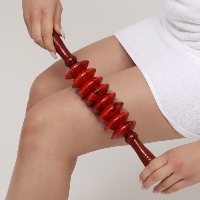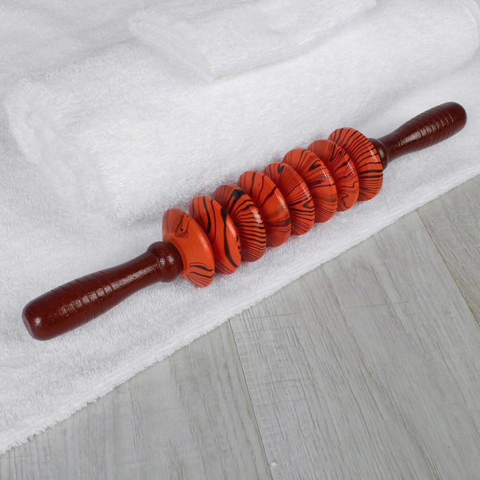 Массажёр «Скалка», универсальный, 36 × 6 см, 8 дисков, деревянный