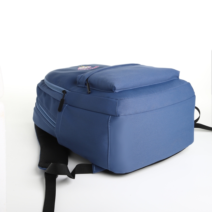Рюкзак школьный из текстиля на молнии, 2 отдела, 3 кармана, цвет синий