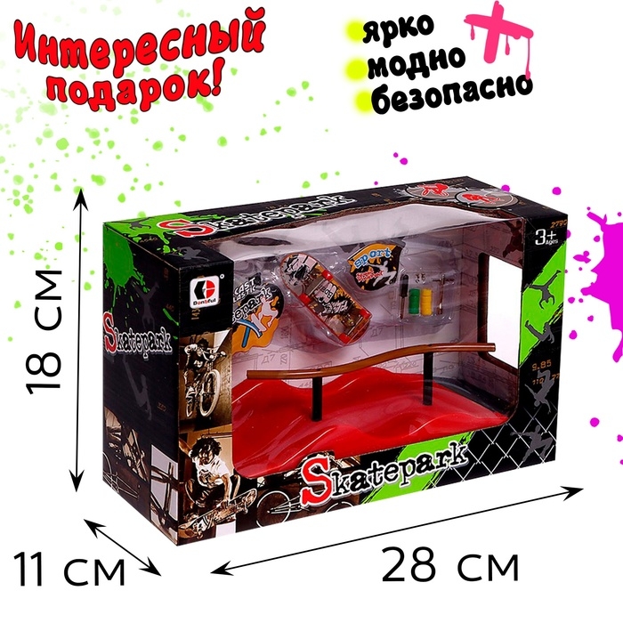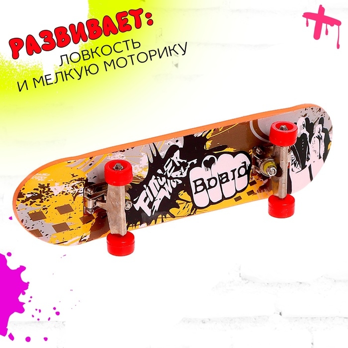 - В комплект входит фингерборд — уменьшенная версия скейтборда.