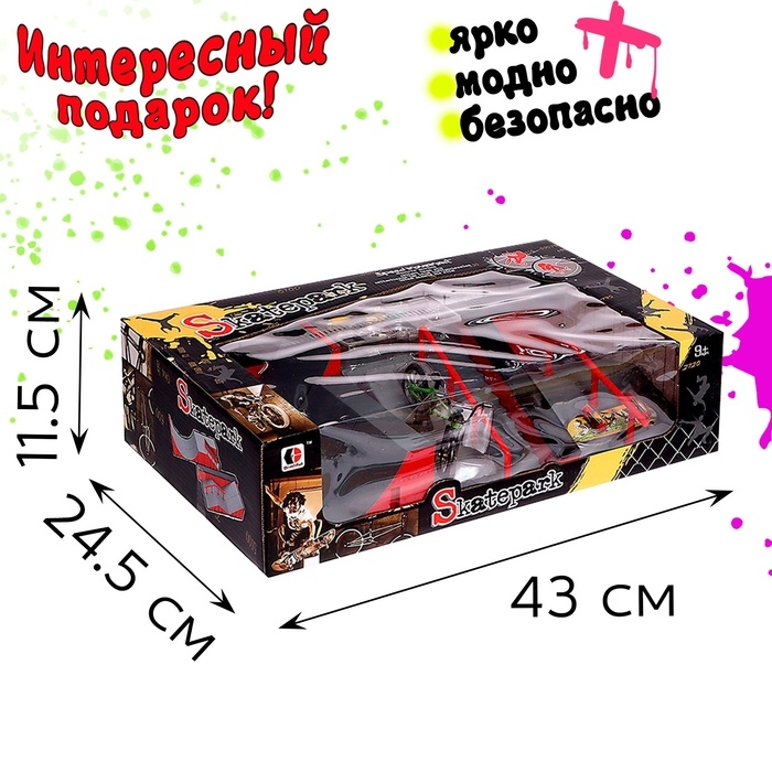 - Комплектация включает в себя комплекс трамплинами, лестницей и перилами, которые расширяют границы возможностей для трюков и маневров.