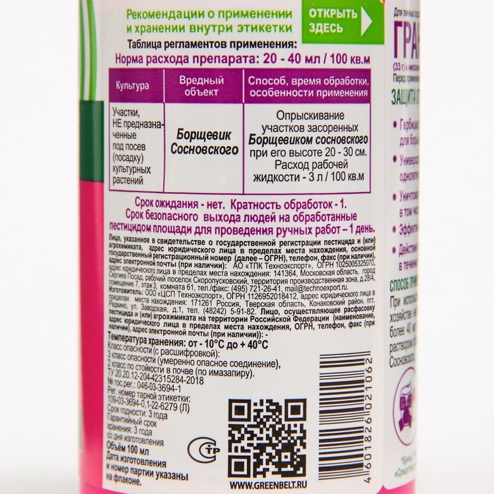 Средство от сорняков ГРАНТ, 100 мл