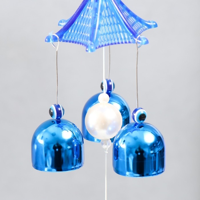 Музыка ветра металл "Месяц в солнце со звёздами" с кисточкой 3 колокольчика 43 см