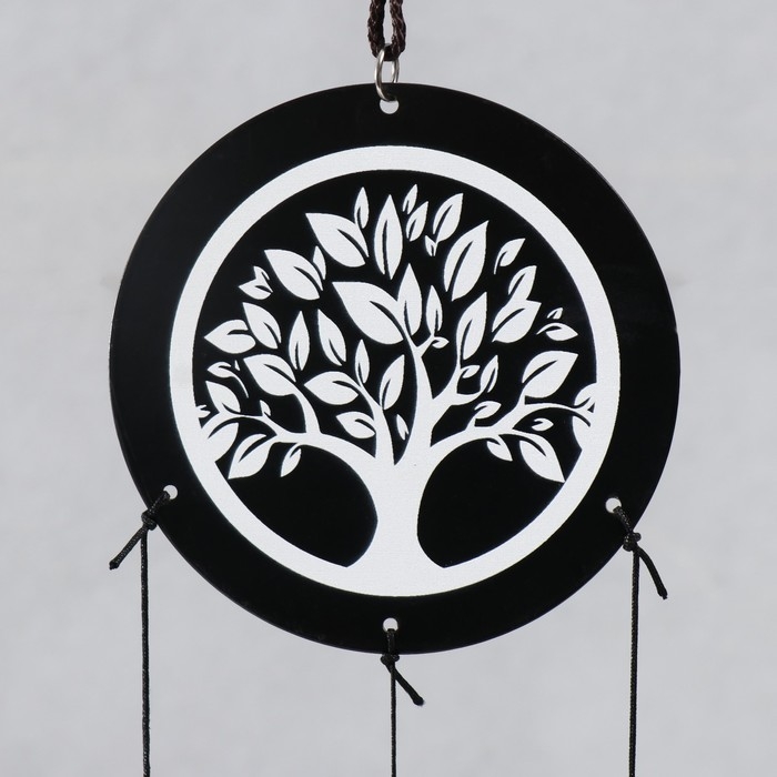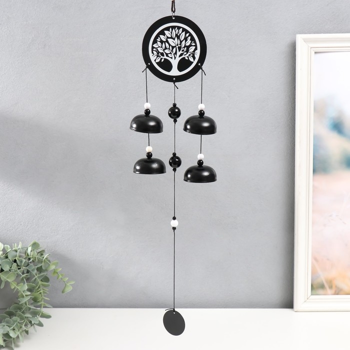 Музыка ветра металл "Дерево" 4 колокольчика чёрно-белый 50 см