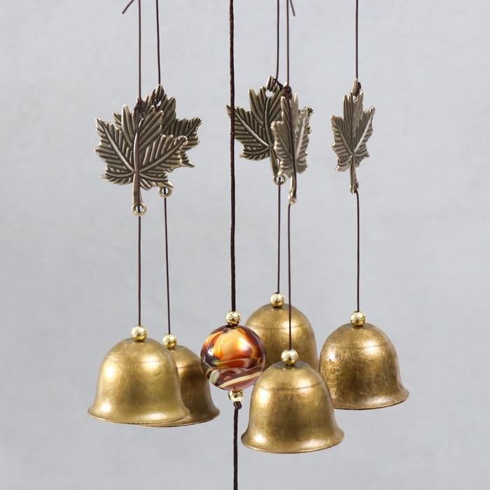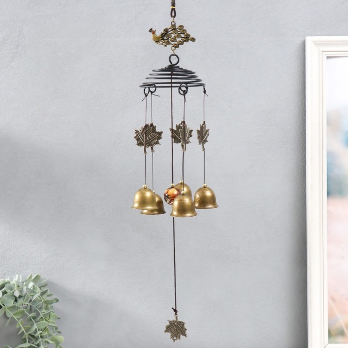 Музыка ветра металл "Павлин и листики" 5 колокольчиков под бронзу 46 см