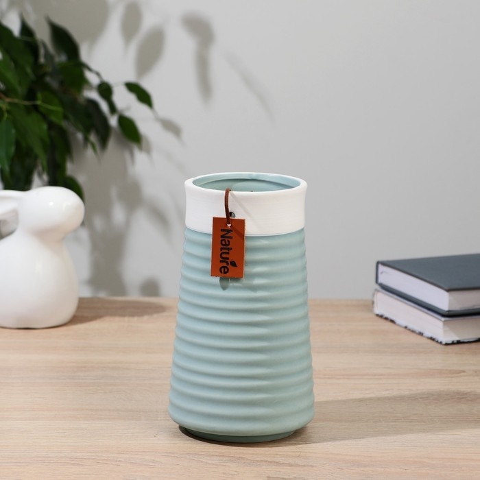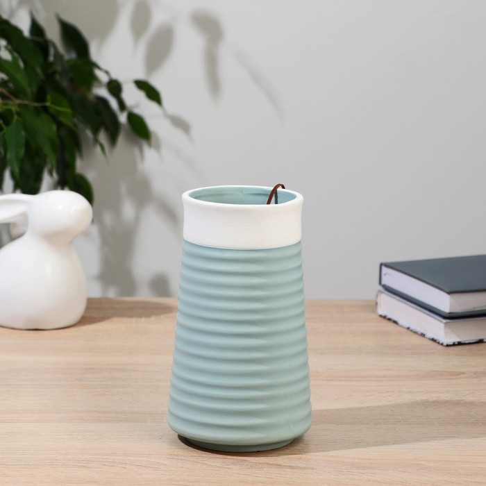 Ваза керамика "Лиам" натура, d-8,5х10 см h-18 см, бело-голубой