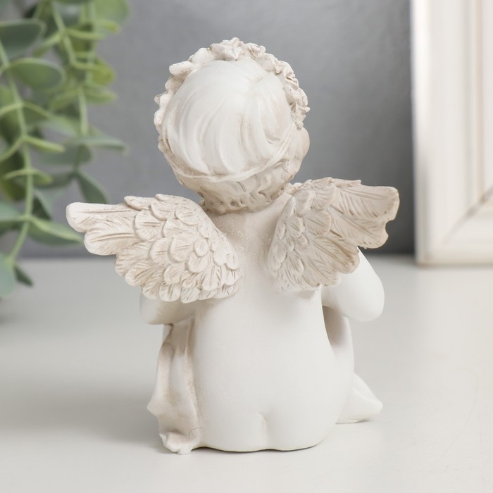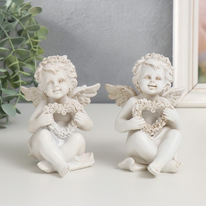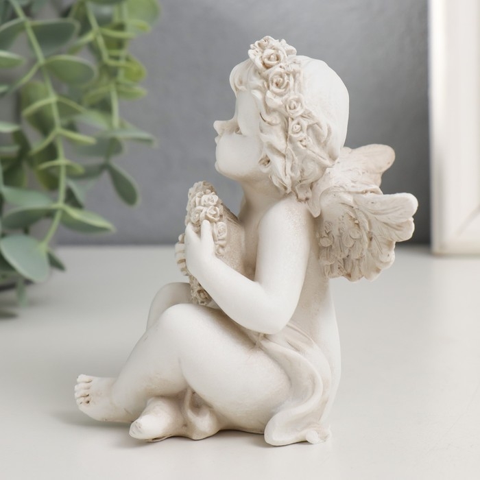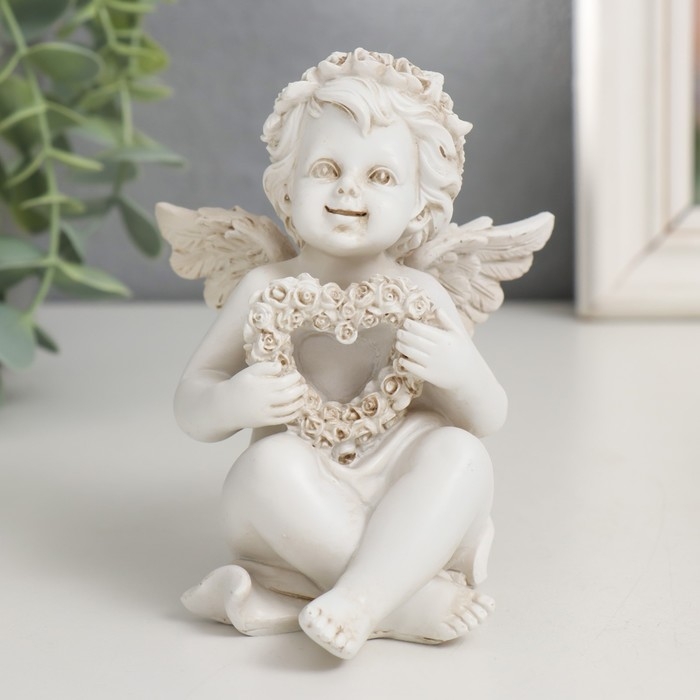Сувенир полистоун "Ангелочек с венком из роз в форме сердца" МИКС 11х9х8,4 см