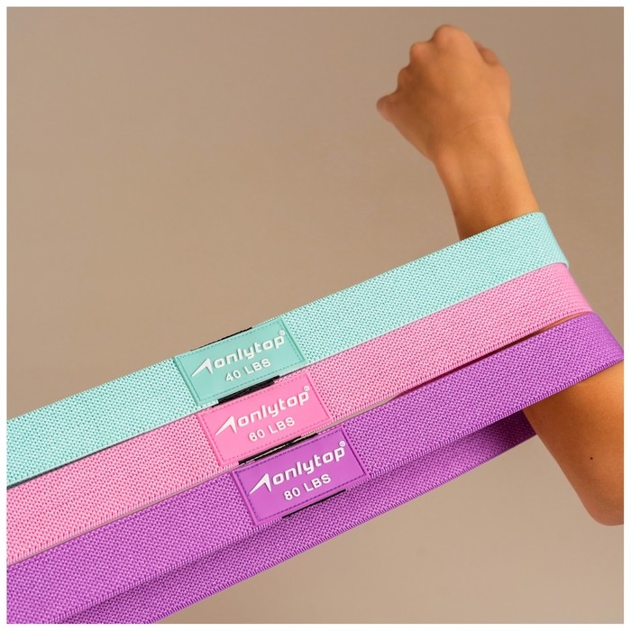 Набор из 3 петель для фитнеса ONLYTOP: нагрузка 18, 27, 36 кг, 204х4 см