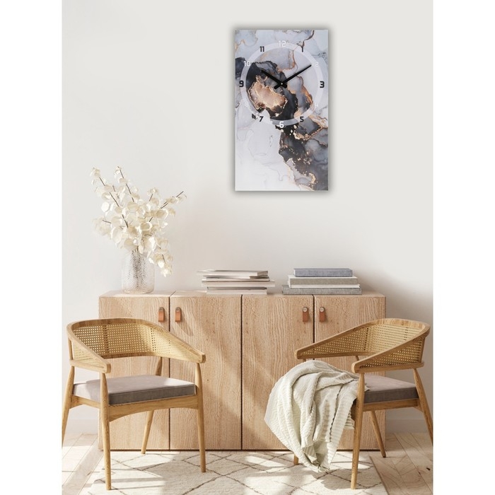 Часы-картина настенные, интерьерные "Мрамор", 35 х 60 см, на холсте, бесшумные