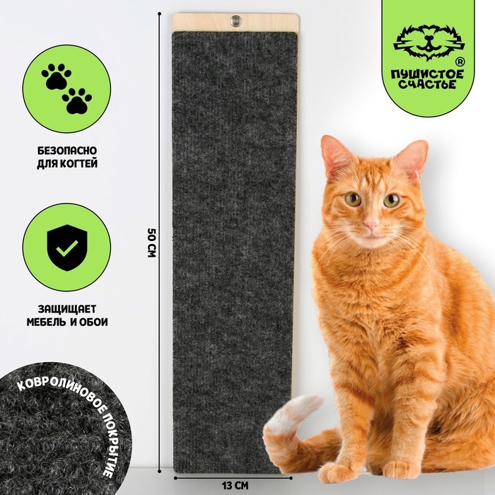 Когтеточка настенная одинарная, 50 х 13 см, серая