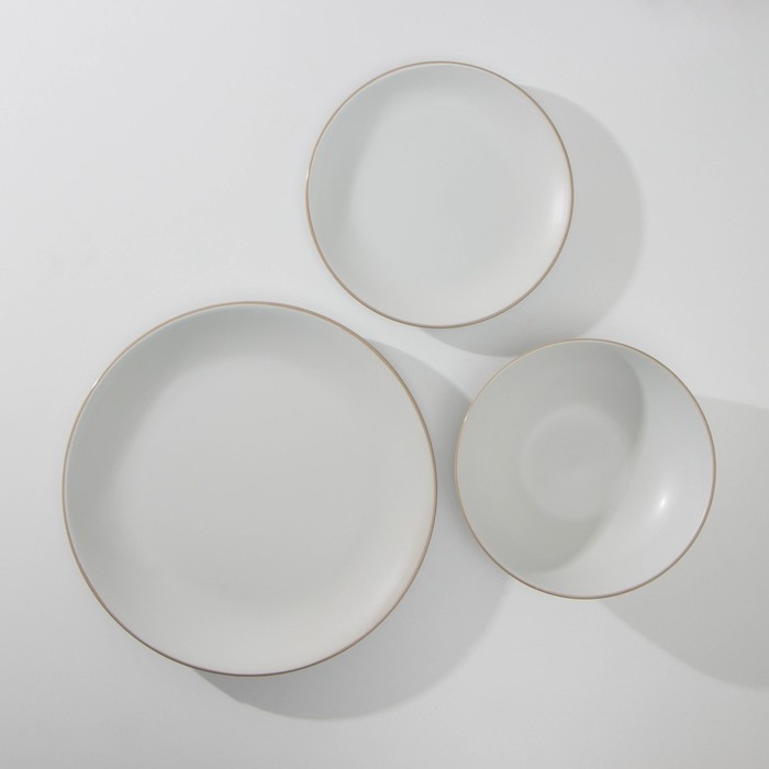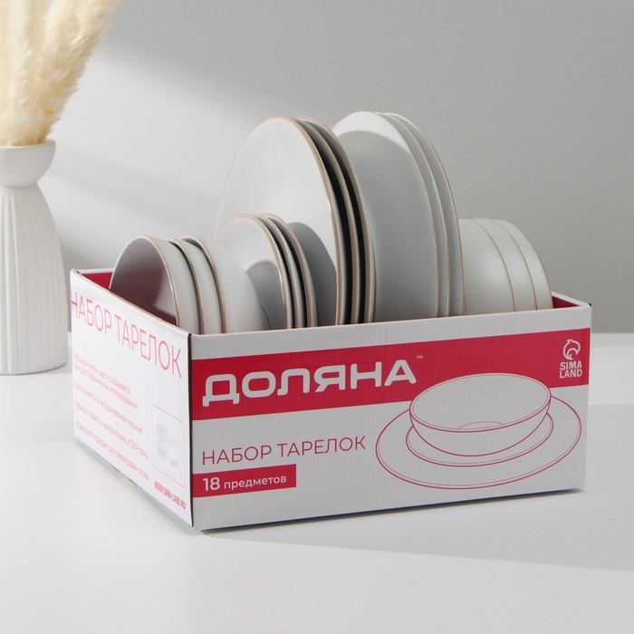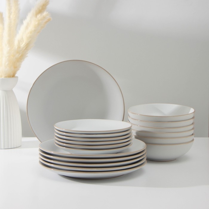 Набор тарелок керамических Доляна «Ваниль», 18 предметов: 6 тарелок d=19 см, 6 тарелок d=27 см, 6 мисок d=19 см, цвет белый