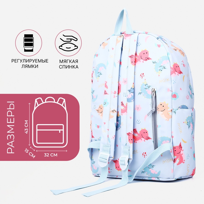 Рюкзак школьный из текстиля на молнии, наружный карман, цвет голубой