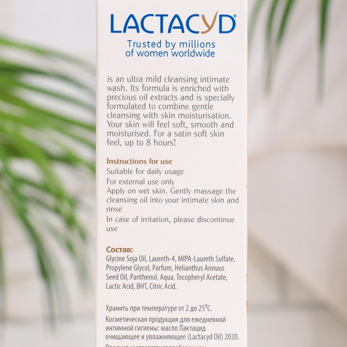 Масло для интимного ухода LACTACYD Очищающее и увлажняющее 200 мл. Очищающее и смягчающее масло LACTACYD, обогащенное натуральными растительными маслами и природными липидами, бережно очищает и смягчает кожу, в то же время восстанавливая ее естественный баланс увлажненности. Натуральная молочная кислота, входящая в состав поддерживает естественную микрофлору интимной зоны, бережно очищая и защищая ее каждый день. Гипоаллергенно.