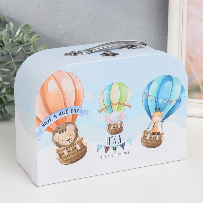 Шкатулка картон сундучок "Зверятна на воздушных шарах" 25х10х18,5 см